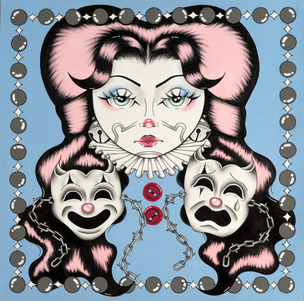 EM: My use of symbolism throughout my work expresses cultural identity and societal resistance, alongside more modern takes on traditional fine line Chicano artwork. A few recurring visual motifs would be sad clowns. Sad clowns are often characterized by cyclothymic temperament—encouraging the creation of lighthearted humor despite inner turmoil, which is something I resonate with personally. I have clown paint tattooed under my left eye, and that’s another way I represent myself in my pieces.