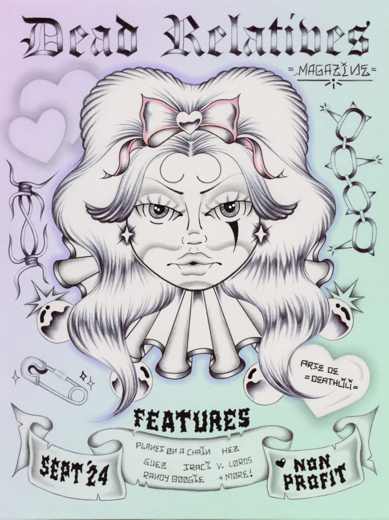 Whether it’s a sticker that feels pulled from a dusty 2001 capsule machine or a ballpoint piece inked with precision and pressure, Deathlili’s work stays rooted in real experience. As Elina moves toward her first solo show and continues building with care—through custom tees, chrome-dipped keychains, and handpicked collaborations—she’s doing more than creating. She’s curating a world where her community can finally see itself reflected.